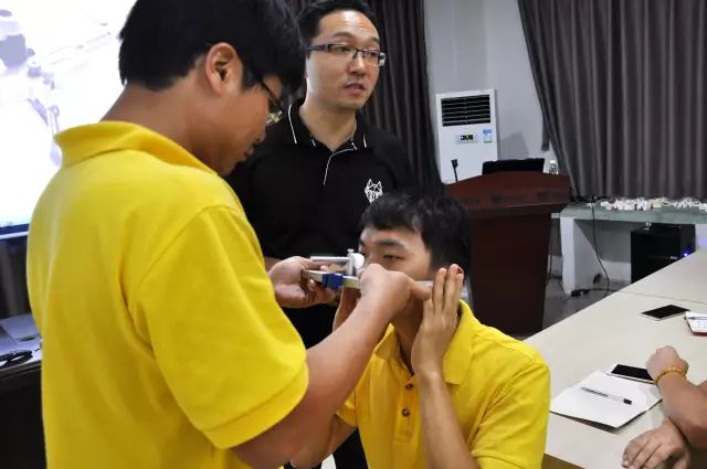 張煥醫(yī)生現(xiàn)場為技工們演示面弓的使用